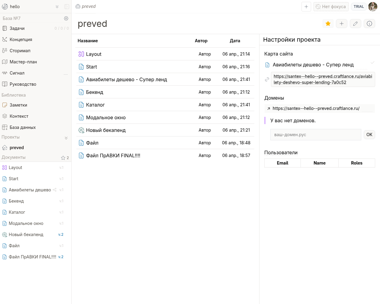Промысел, Craftlance — платформа для мгновенного создания и публикации и передачи товарищу заметок, веб-страниц и воркфлоу сценариев. С полным контролем верстки, бекенд кода, таблиц и базы данных. Пишите ERB-фрагменты, стилизуйте через Tailwind CSS, сохраняйте версии, публикуйте иди пеоежавайте результаты простой командой. Никаких серверов, CI/CD и настройки инфраструктуры.
